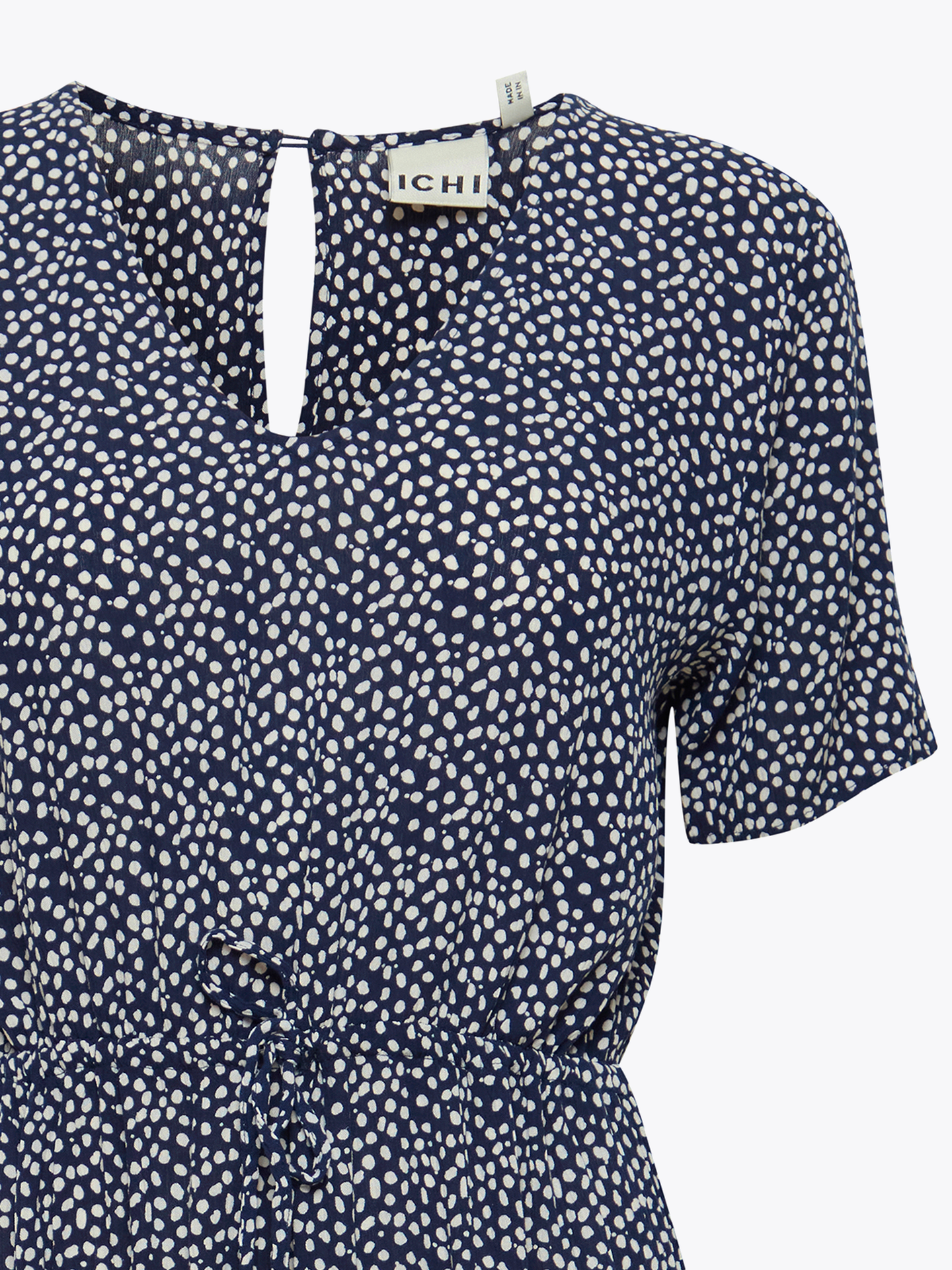 Nydelig sommerkjole fra Ichi som faller vakkert rundt kroppen. Maxikjolen har en løs passform med knytebånd i midjen, slik at du kan fremheve figuren din og skape en flatterende silhuett. Den er designet med en vakker V-hals som gir deg et ekstra preg av eleganse. Bruk kjolen for en dag på stranden, en piknik i parken eller en kveld med venner – denne er en sikker vinner uansett anledning.